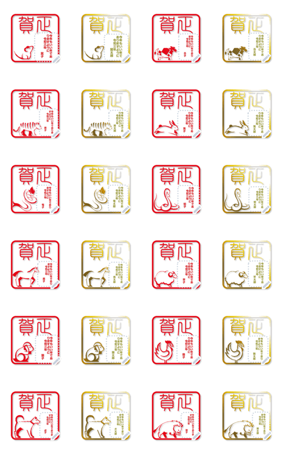 一生使える 十二干支の 正月 年賀状 Lineクリエイターズスタンプ Stamplist